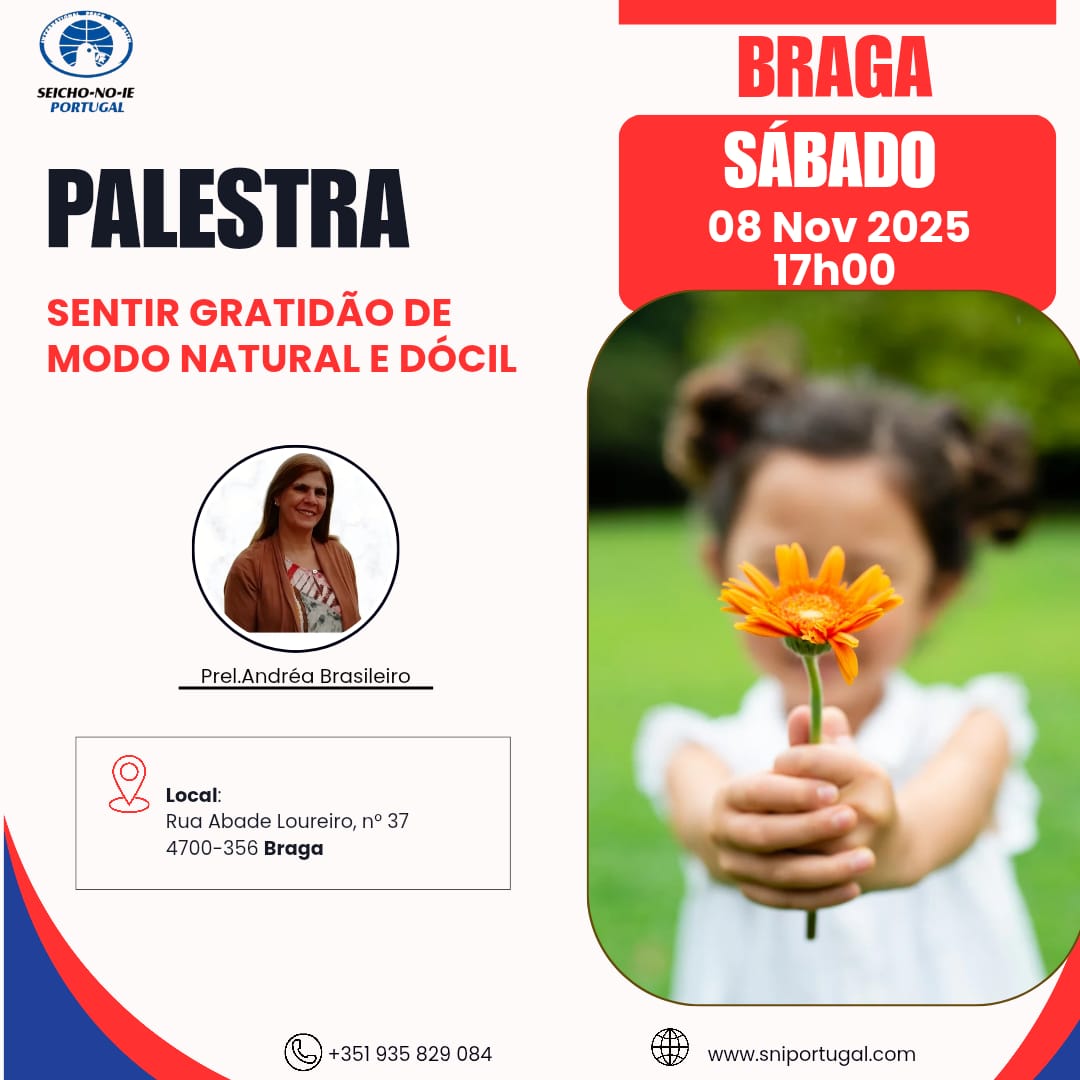 Braga – Palestra – Tema: Sentir gratidão de modo natural e dócil